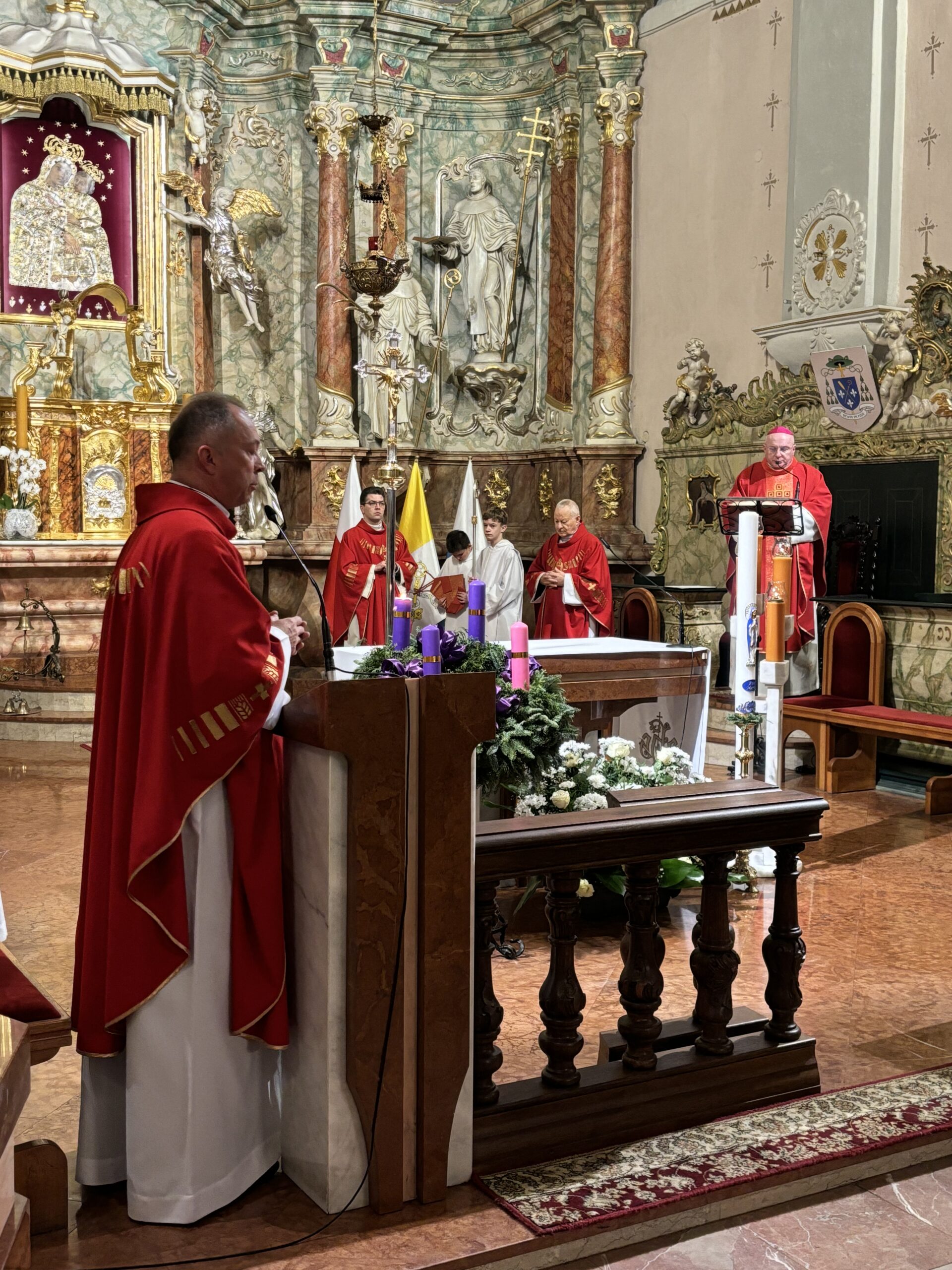 Obraz w słowie Bożym, jak podkreślił kaznodzieja, to „obraz zbawienia oraz drogi, na którą weszliśmy wraz z początkiem Adwentu, to obraz drogi, na której zmierzamy na spotkanie z Panem, to obraz oczekiwania na powtórne przyjście Pana”. W Ewangelii do Chrystusa przychodzą ludzie obciążeni trudnościami. „Mamy trudności życia fizycznego, ale z pewnością nie brakowało ludzi z obciążeniami duchowymi i psychicznymi, potrzebującymi umocnienia. Chrystus jest lekarzem też tego, co jest chorobą duchową, żebyśmy mogli sprostać wymaganiom, które współczesny świat ze sobą niesie” – mówił bp Wętkowski. Przywołał pytanie Jezusa: kim dla was jestem? „To pytanie będzie powracać nieustannie w życiu każdego wierzącego. Na tej drodze Bóg stawia nam przykłady tych, którzy pomagają nam na nie odpowiedzieć – ludzi świętych. Do tej grupy należy nasza patronka, św. Barbara” – kontynuował.