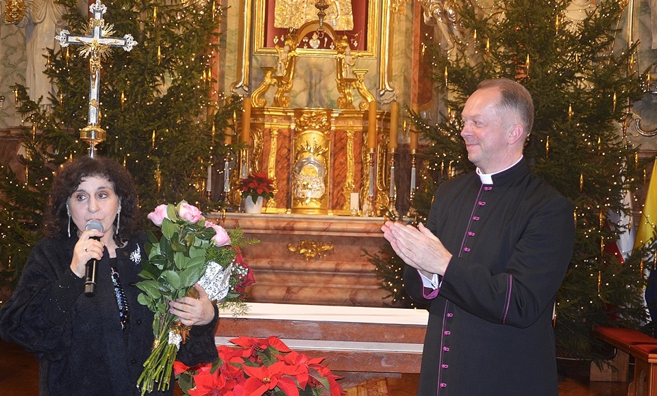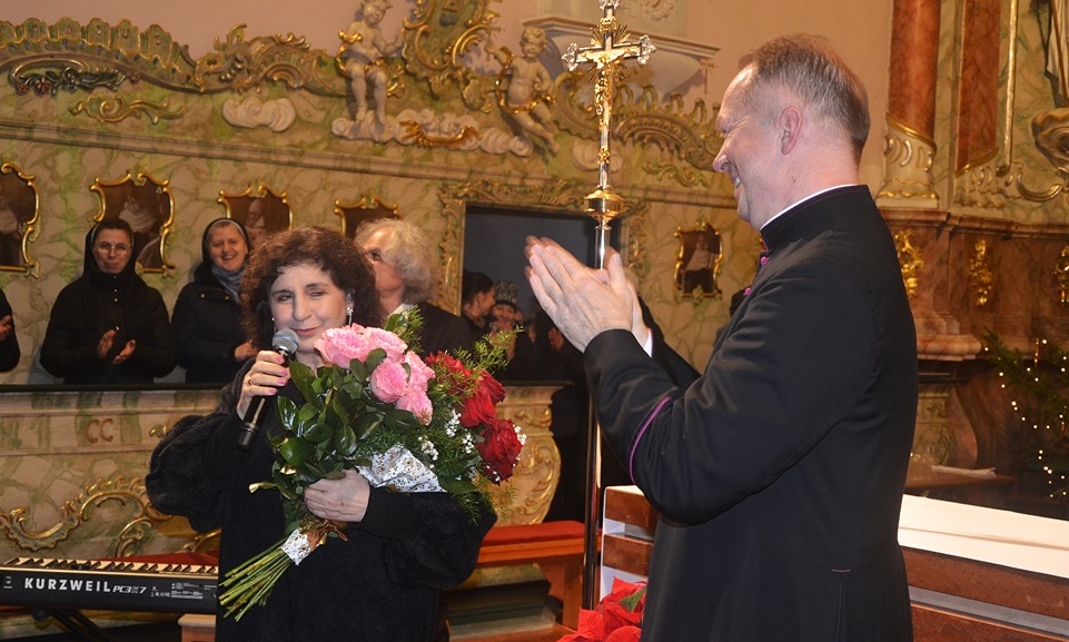 Tak też było. Przez ponad godzinę Eleni wykonywała kolędy i pastorałki, zapraszając zebranych do wspólnego śpiewania. Przeplatała występ komentarzami refleksjami, dzieląc się swoim doświadczeniem wiary. W świątyni wytworzyła się wspólnota, a atmosfera serdeczności udzieliła się wszystkim zebranym. Kwiatami i owacjami dziękowano za wykonanie kolęd… no i oczywiście nie obyło się bez bisów. Eleni złożyła wszystkim życzenia, by mieli zawsze Boga w sercu oraz szczęśliwego, pełnego miłości nowego roku.