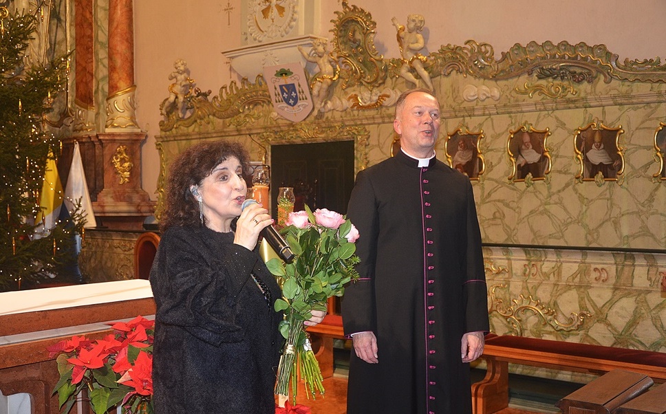 Witając Eleni i rozpoczynając wieczór ks. prałat Artur Niemira, miejscowy proboszcz przypomniał, że czas Bożego narodzenia to święta miłości – tej największej. Opowiadają o niej kolędy, w których „zawarta jest nasza wiara, nasza miłość do Jezusa, nasza czułość, z jaką Bożą Dziecinę przyjmujemy. Kolędy to część naszej kultury, tożsamości, ale też wyraz wiary i modlitwa, kontemplacja tajemnicy Bożego Narodzenia”.