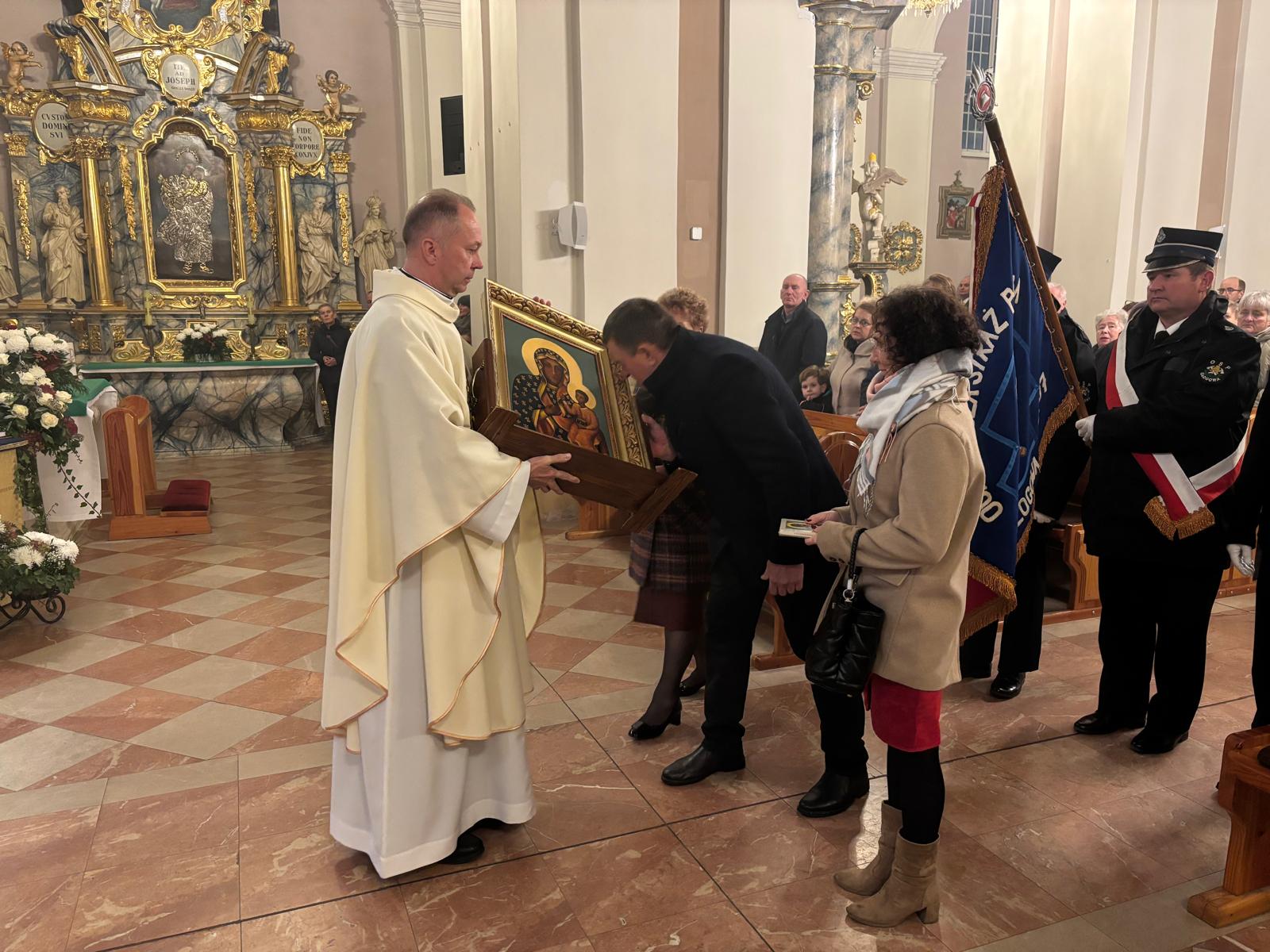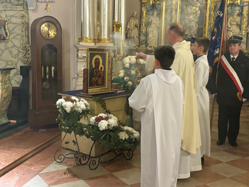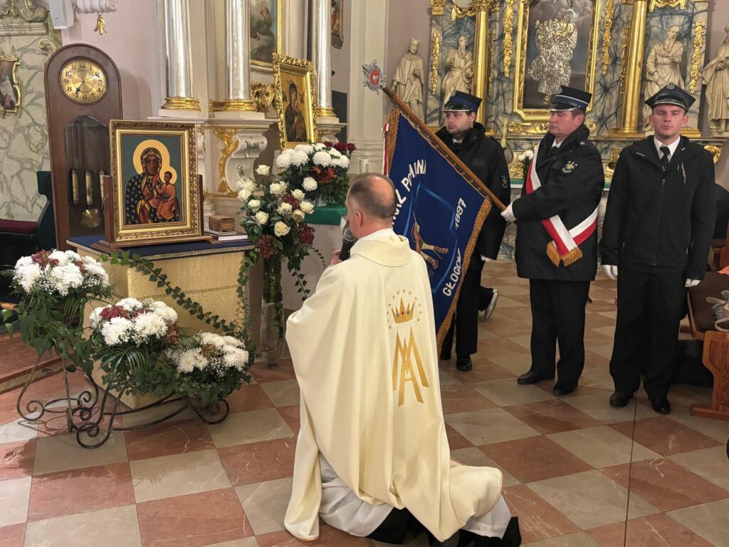 W sobotę 8 listopada br. mieszkańcy Głogowej na Mszy świętej dziękowali za łaski nawiedzenia Obrazu Matki Bożej Częstochowskiej w ich domach i rodzinach. Oddając Obraz, raz jeszcze zawierzyli się opiece Maryi, najlepszej z matek. Na zakończenie liturgii Obraz odebrała pierwsza rodzina z Dębiny, gdzie od dziś rozpoczyna się nawiedzenie.