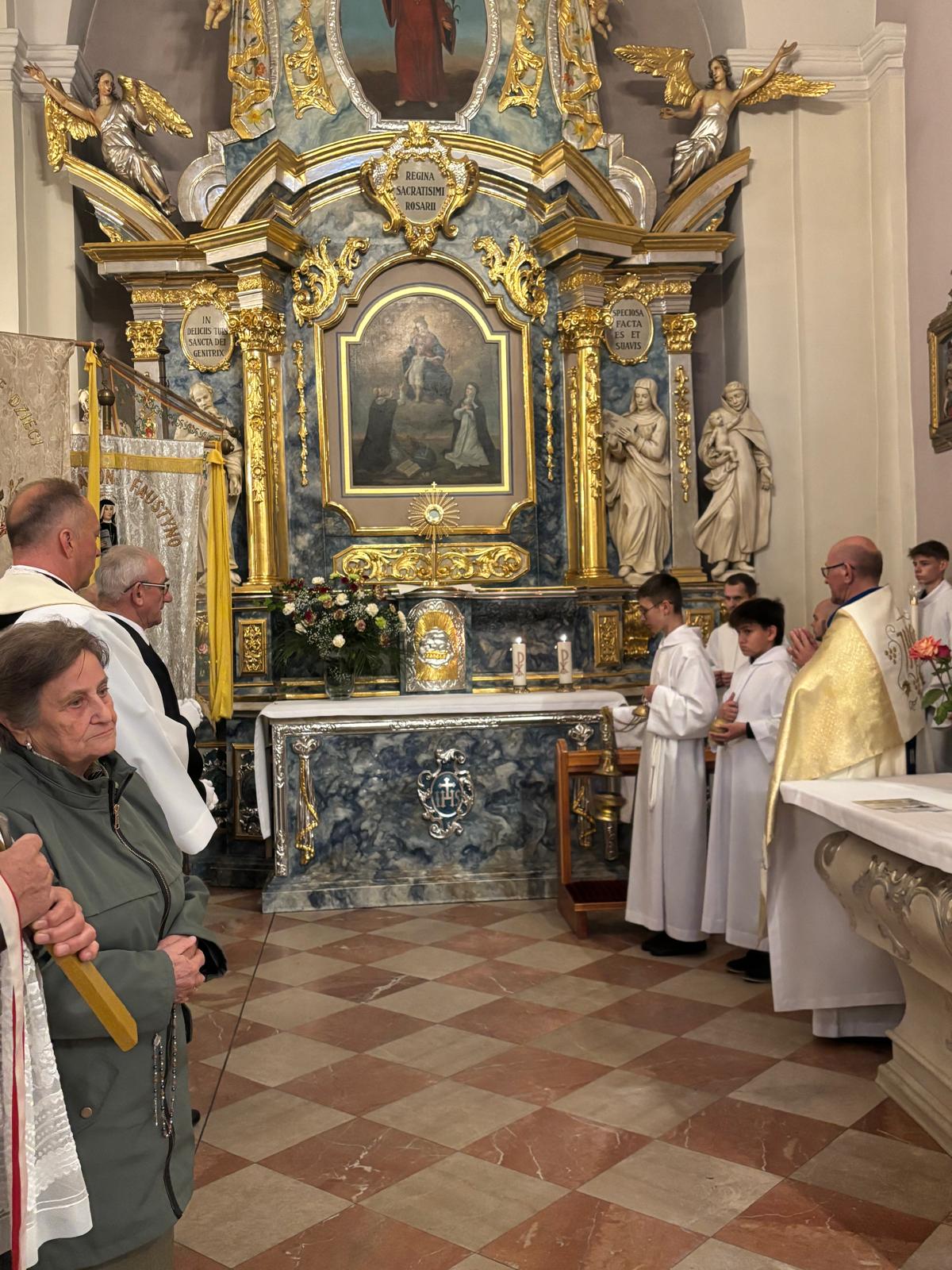 W kościele parafialnym, w bocznym ołtarzu, znajduje się barokowy obraz NMP Różańcowej z XVIII wieku olej na płótnie, na zasuwie. To znak wielkiej czci, jaką parafianie od wieków oddawali Matce Bożej, powierzając swoje intencje szczególnie na modlitwie różańcowej.