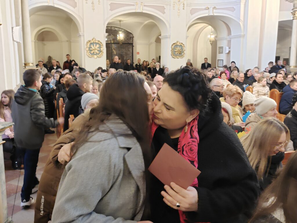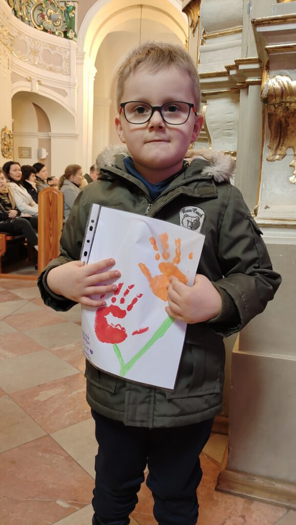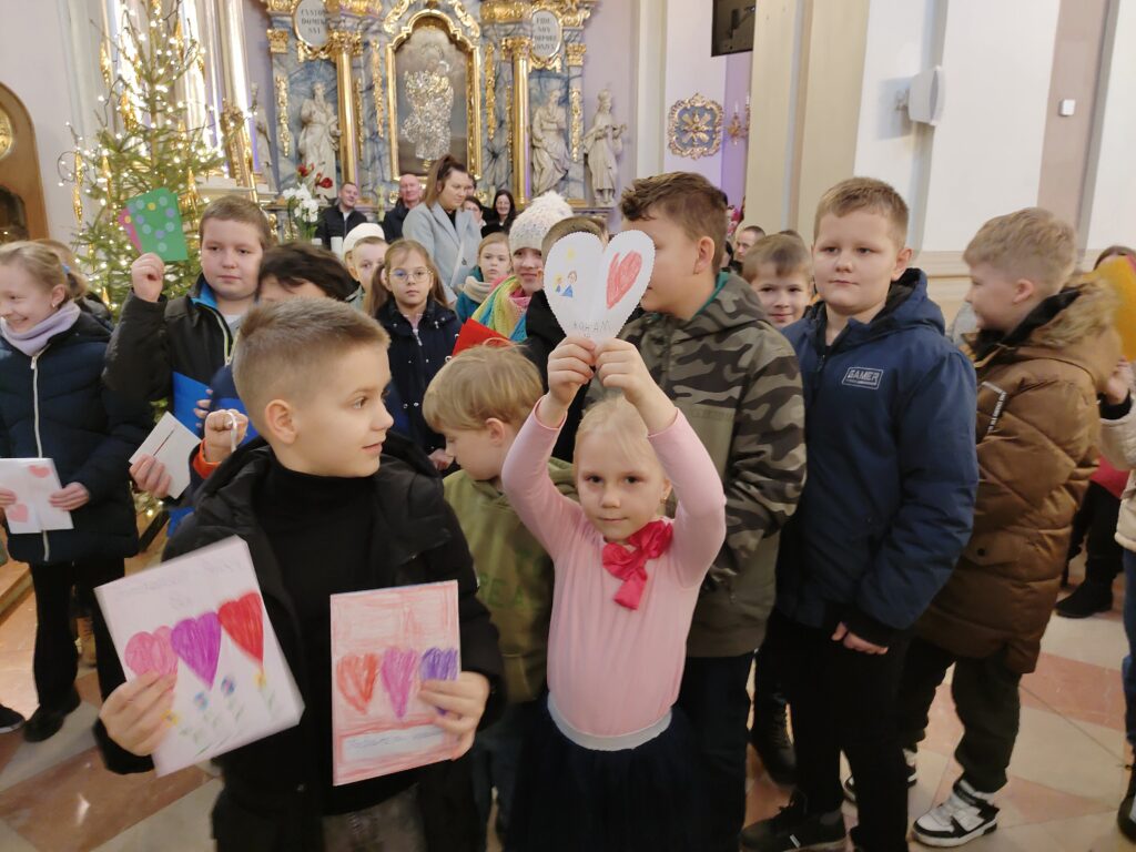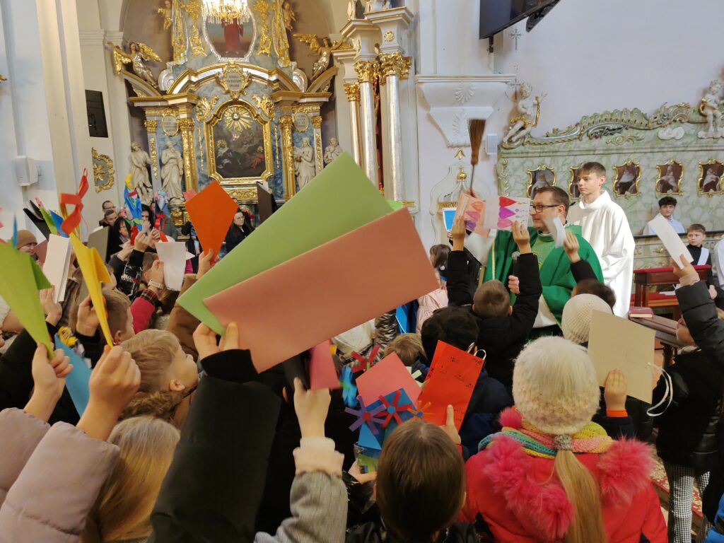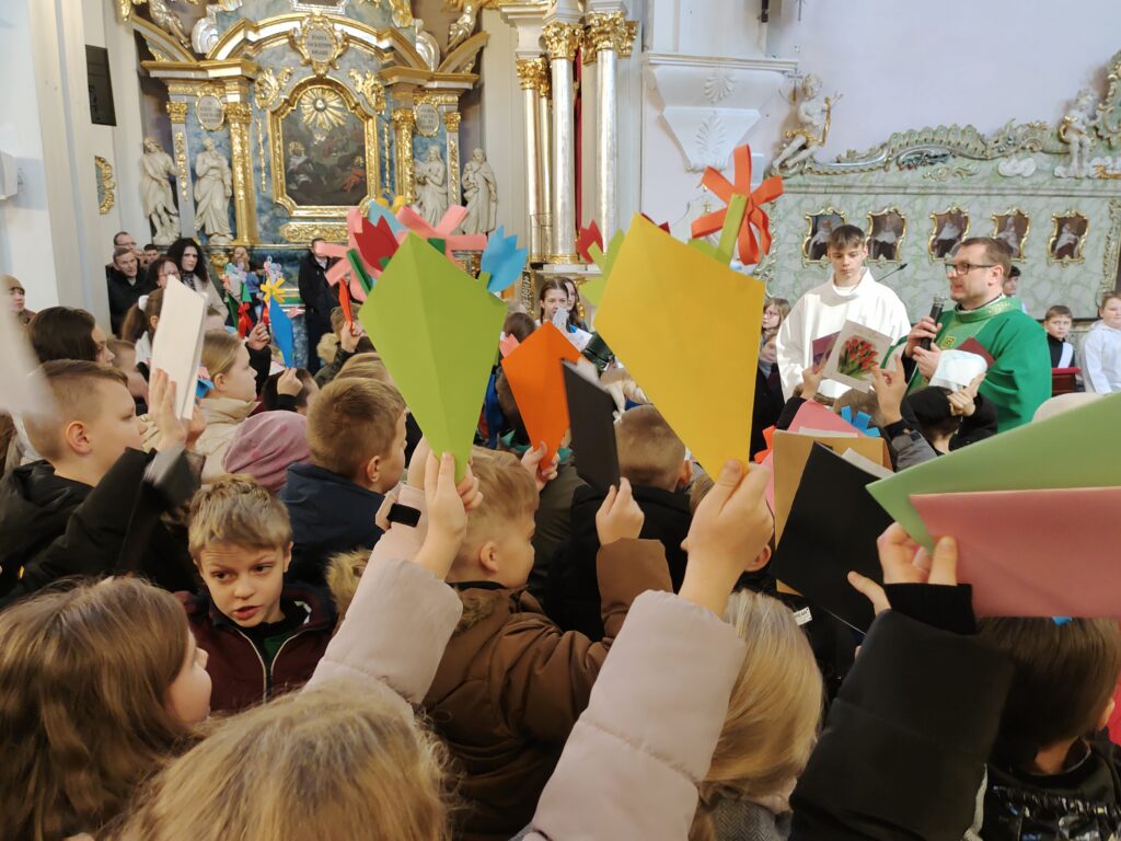 Modlono się za babcie i dziadków: o błogosławieństwo dla żyjących i wieczne zbawienie dla zmarłych. Dzieci przygotowały laurki, które zostały pobłogosławione i wręczone obecnym na Mszy babciom i dziadkom. Nie zabrakło życzeń, wzruszeń, uścisków i pocałunków.