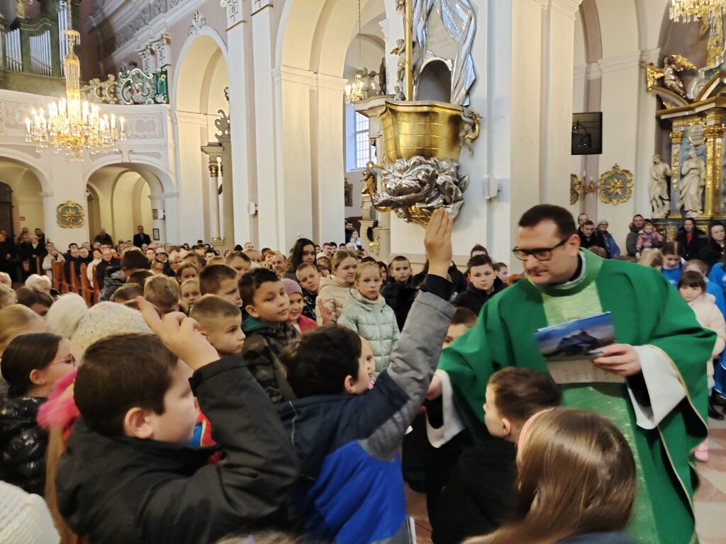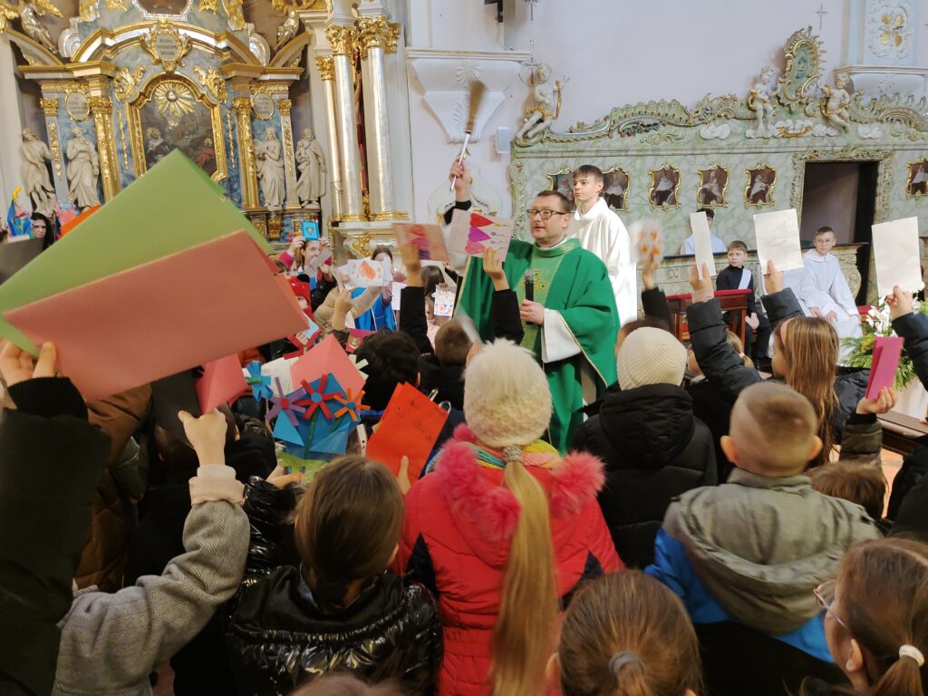 Podczas dialogowanej homilii ks. Przemysław Janiak pytał, za co powinniśmy dziękować babciom i dziadkom? Wśród odpowiedzi, dzieci podkreślały, że za miłość, opiekę i dobre serce. Streściły wszystkie wypowiedzi w jedną: dziękujemy za to, że są.