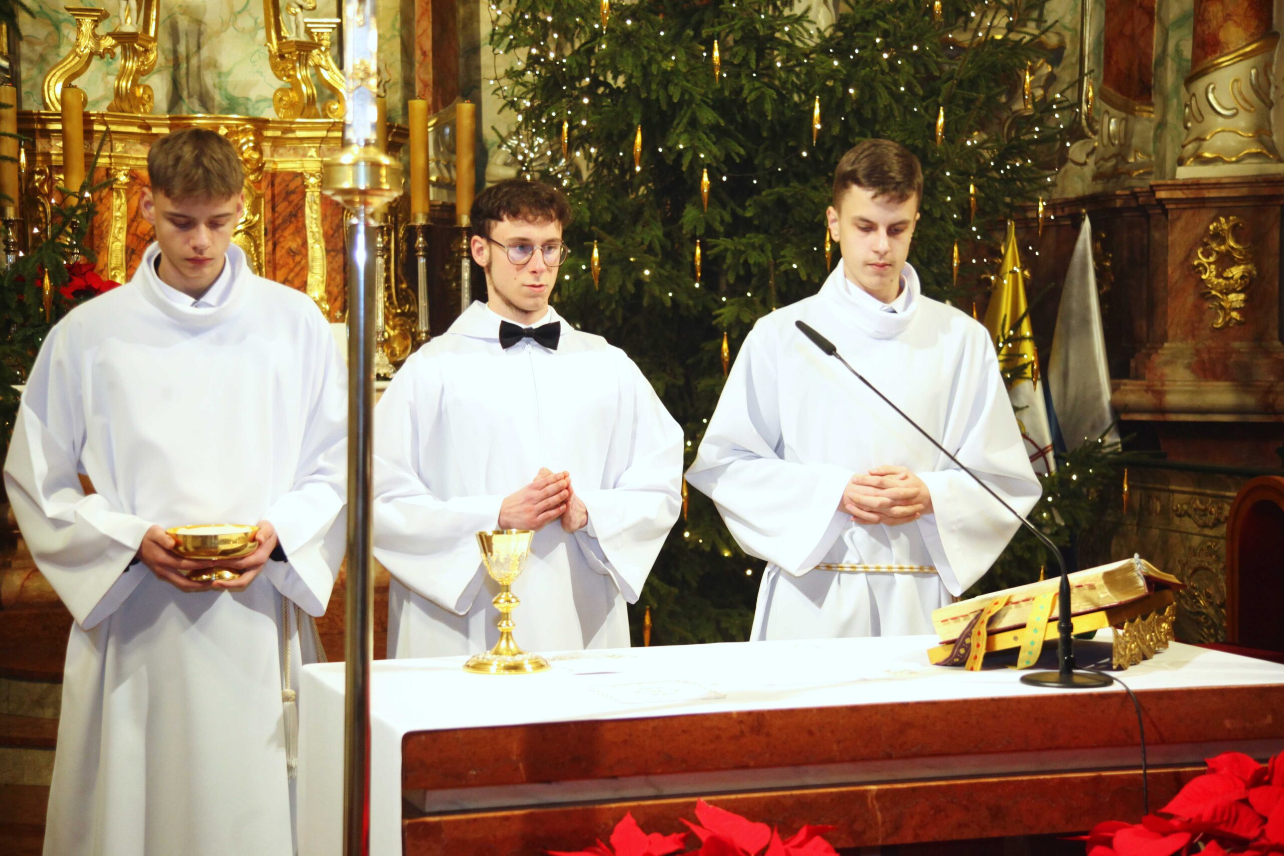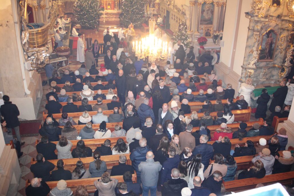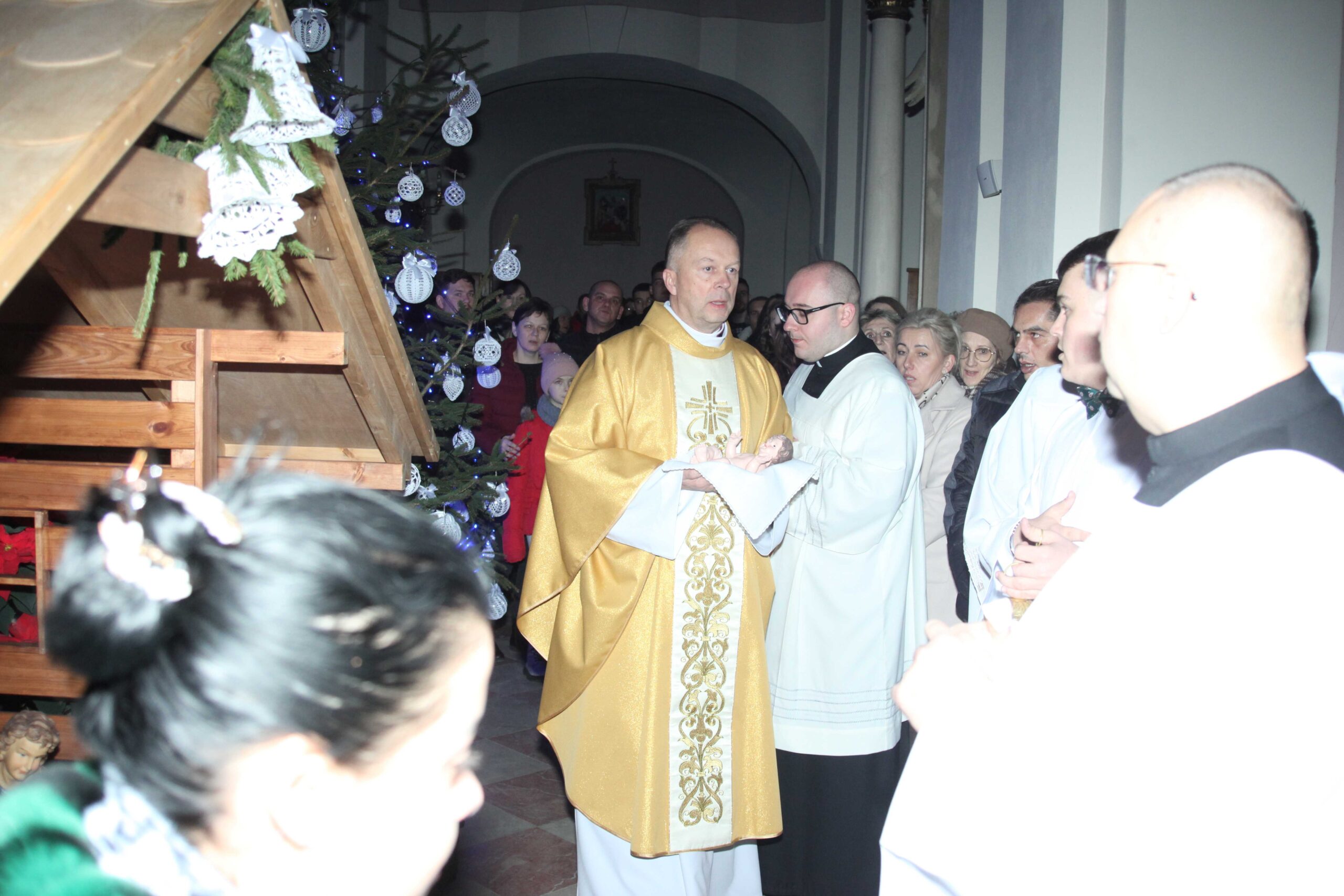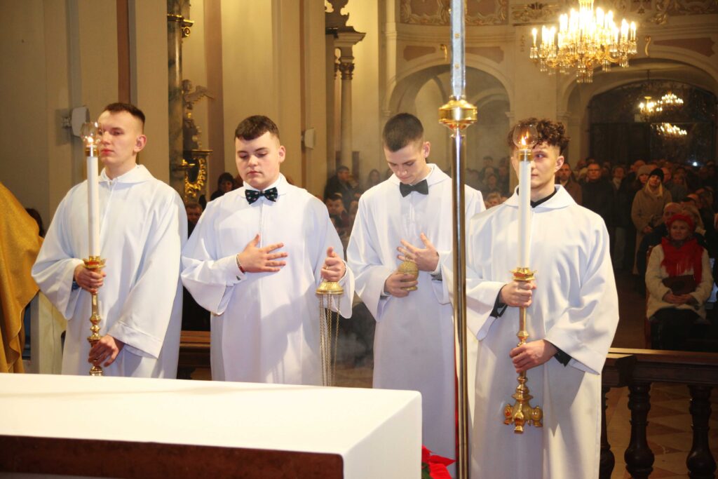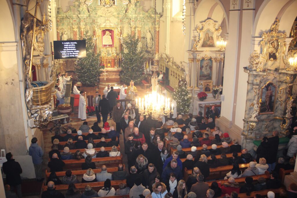 W noc Bożego Narodzenia o północy, po wybiciu dwunastu uderzeń gongiem, rozpoczęła się Pasterka – Msza w nocy Narodzenia Pańskiego. Przy śpiewie kolędy „Wśród nocnej ciszy” procesyjnie asysta i celebrans udali się do żłóbka, gdzie złożono figurkę Dzieciątka Jezus. Uroczystą Mszę świętą poprzedził koncert kolęd w wykonaniu parafialnego chóru.
