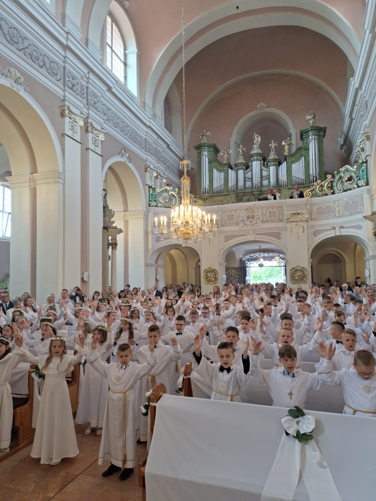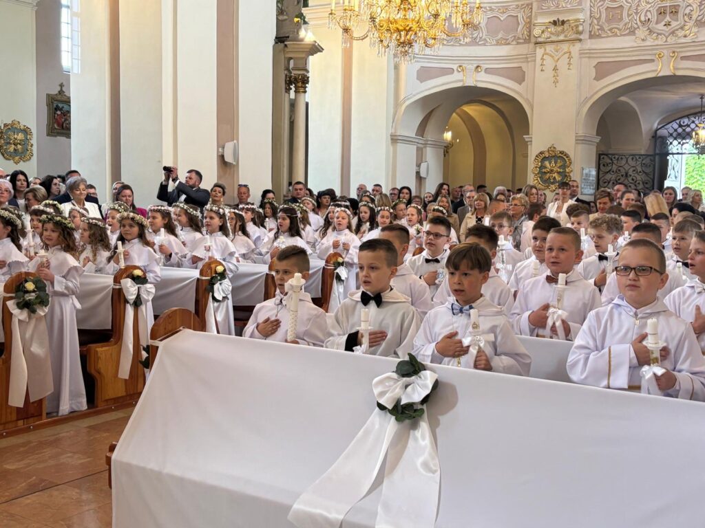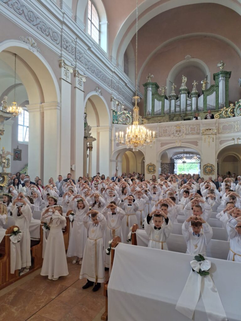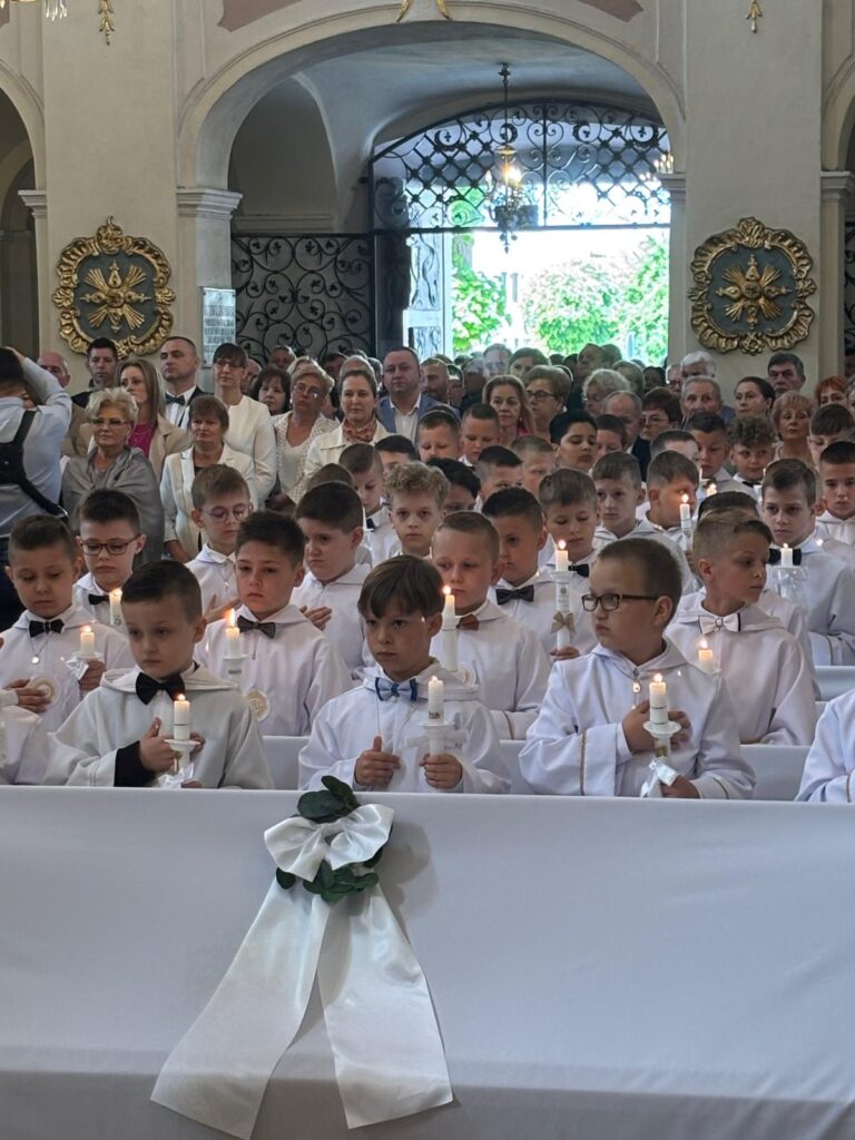 W niedzielę 11 maja w naszej parafii miała miejsce uroczystość Pierwszej Komunii Świętej. 91 dzieci po raz pierwszy w pełni uczestniczyło w Mszy świętej karmiąc się Ciałem Pańskim. Pan Jezus przyszedł do ich serca po raz pierwszy w Eucharystii.