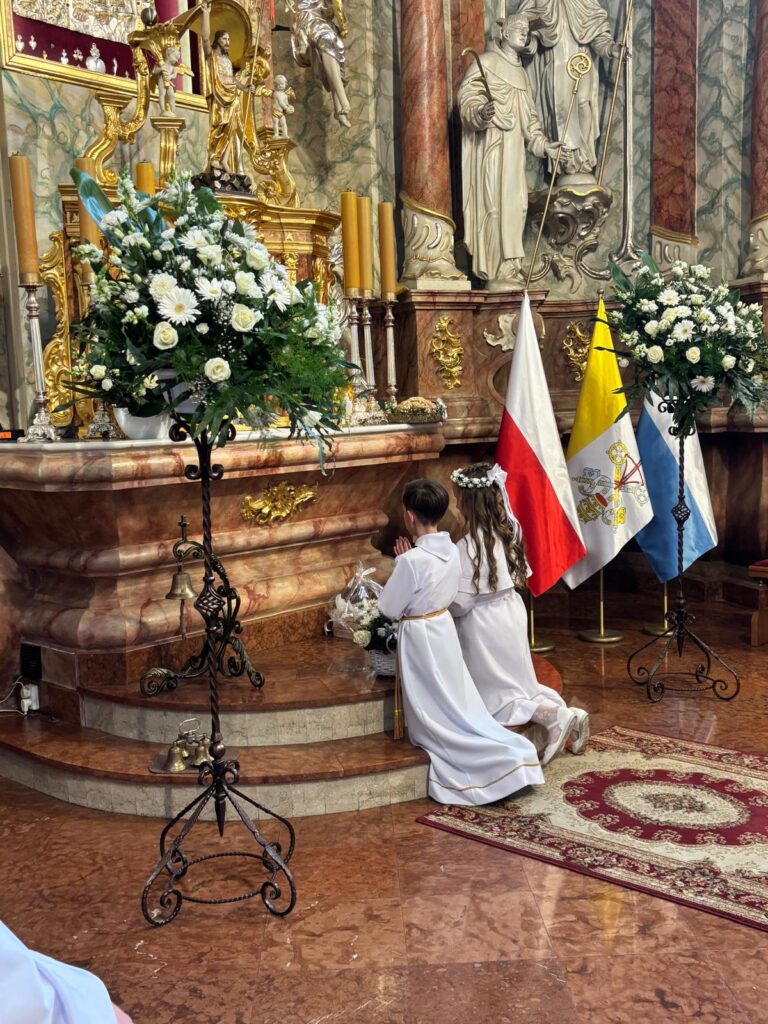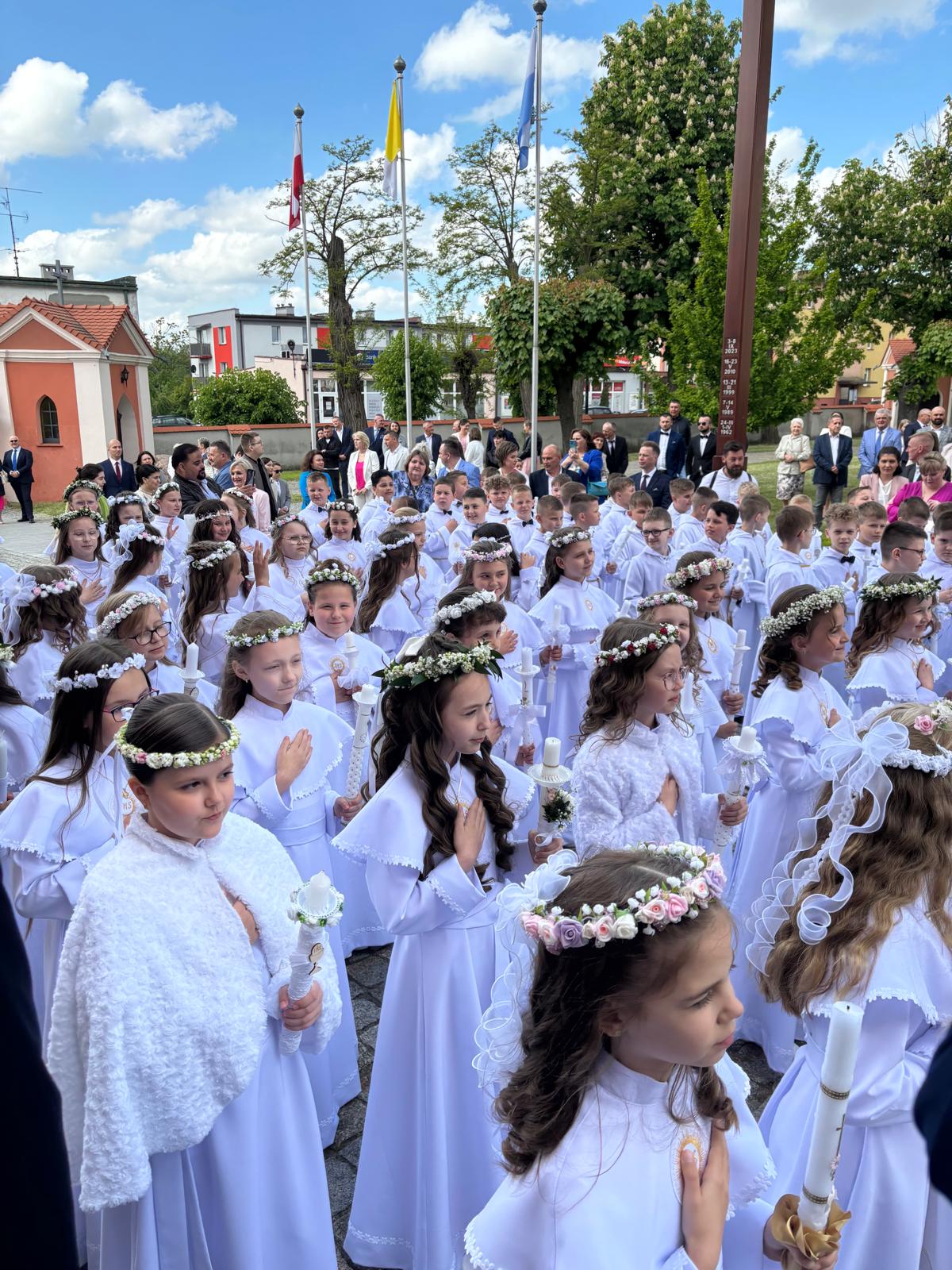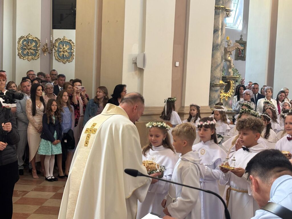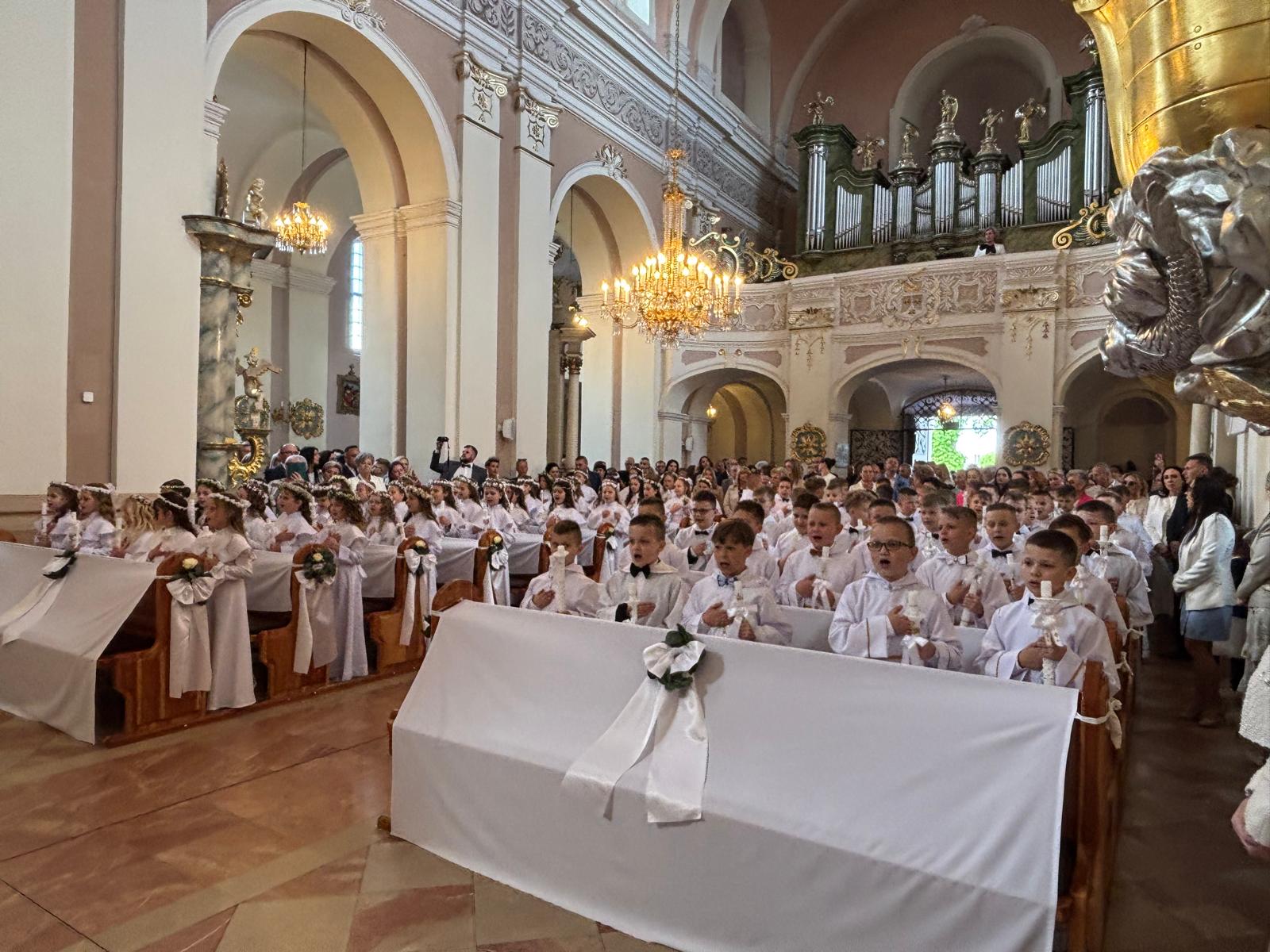 W niedzielę 11 maja w naszej parafii miała miejsce uroczystość Pierwszej Komunii Świętej. 91 dzieci po raz pierwszy w pełni uczestniczyło w Mszy świętej karmiąc się Ciałem Pańskim. Pan Jezus przyszedł do ich serca po raz pierwszy w Eucharystii.