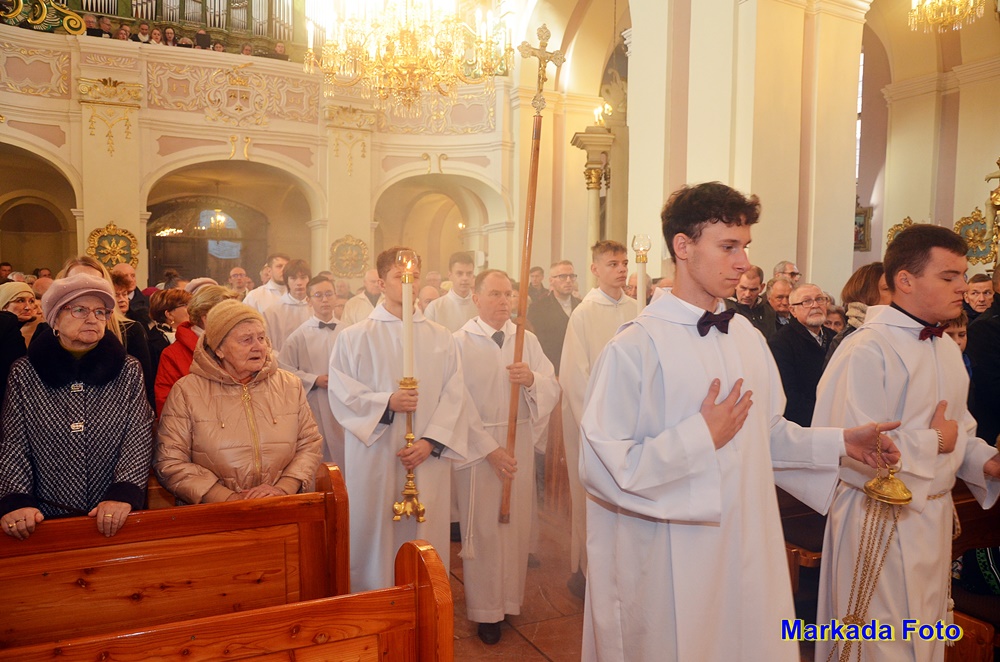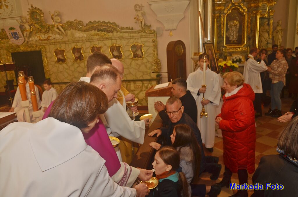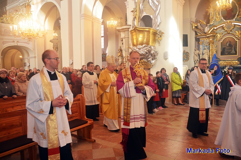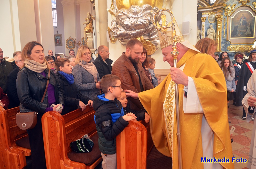 Witając Pasterza Diecezji, proboszcz parafii ks. prał. Artur Niemira podkreślił, że parafia w ubiegłym roku przeżyła nawiedzenie Matki Bożej w znaku jasnogórskiej Ikony – nawiedzenie, które zrodziło się z wiary Prymasa Tysiąclecia. Jego bezpośrednim owocem jest trwające nawiedzenie Obrazu Matki Bożej Częstochowskiej w rodzinach kłodawskich parafian.